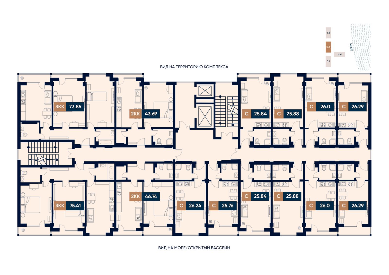 1. Этаж и корпус — критично важно для сохранения вида на море с учетом будущих очередей.